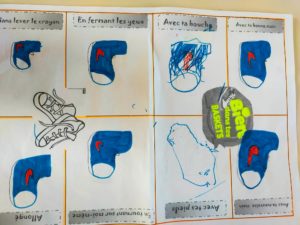 En classe, nous avons essayé de dessiner des baskets avec plusieurs contraintes (avec la bouche, les pieds, en fermant les yeux…). C’était très difficile !