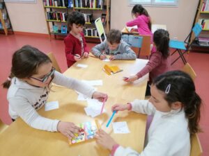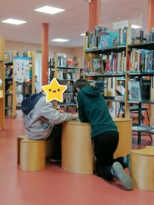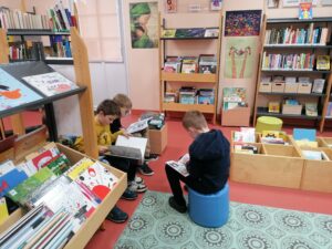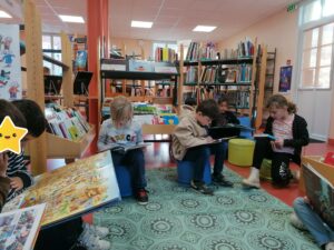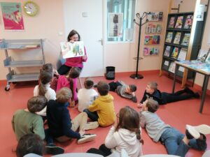 Le jeudi 30 novembre, nous sommes allés à la bibliothèque. Nathalie a partagé la classe en deux groupes: le premier écoutait les histoires qu’elle lisait et le deuxième groupe faisait des coloriages de Noël . Quand ils avaient terminé, ils pouvaient lire des livres.