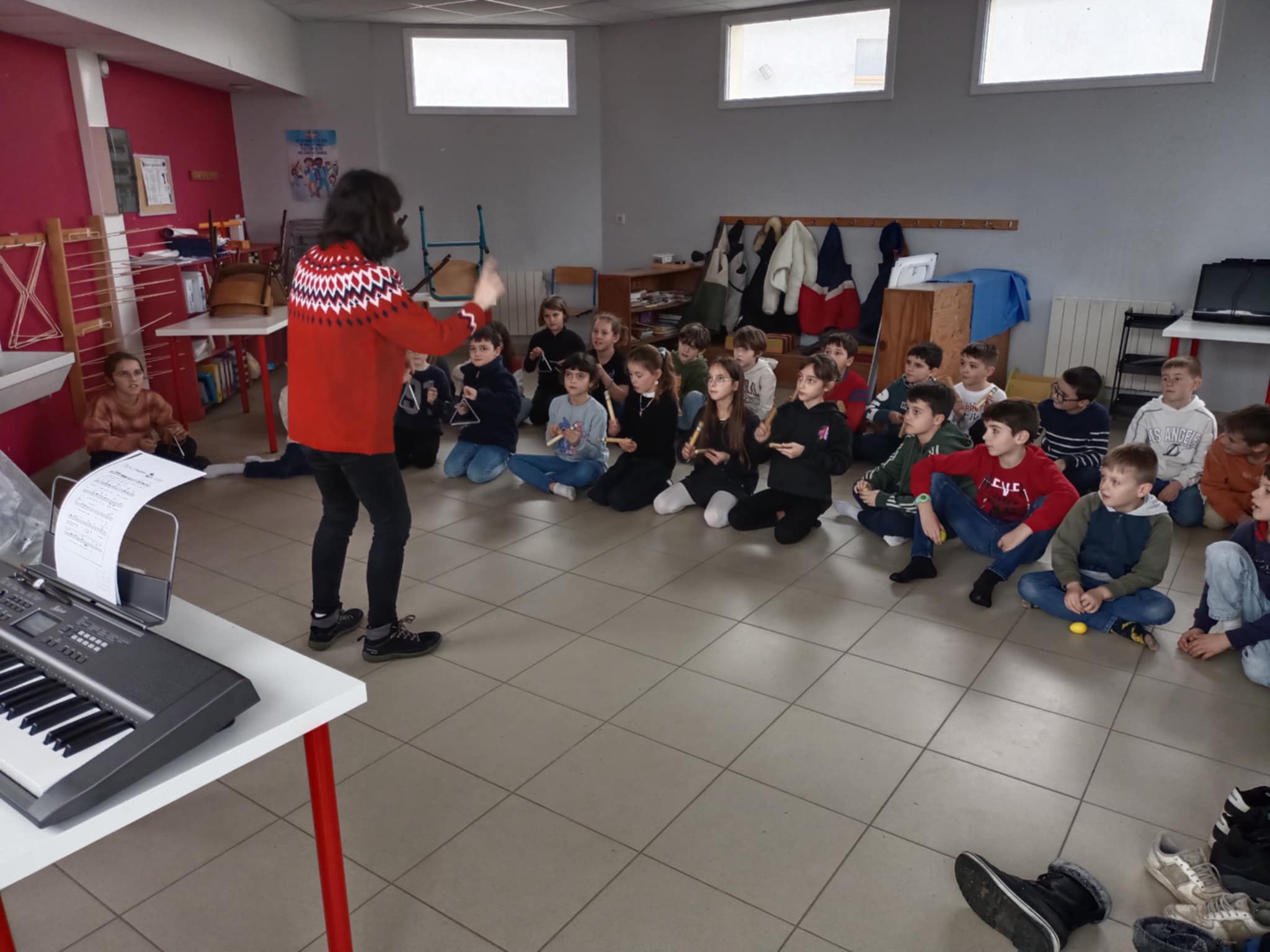 Avec Sarah, nous avons fait plusieurs séances de chant chorale. Nous avons commencé par apprendre le chant « C’est presque rien c’est presque tout » puis « Mimi-Pinceau » dans lequel nous avons intégré des gestes et enfin « Tout rebarbouiller ». Pour ce dernier, nous avons chanté avec toute l’école ! Nous avons aussi pu jouer de certains instruments par