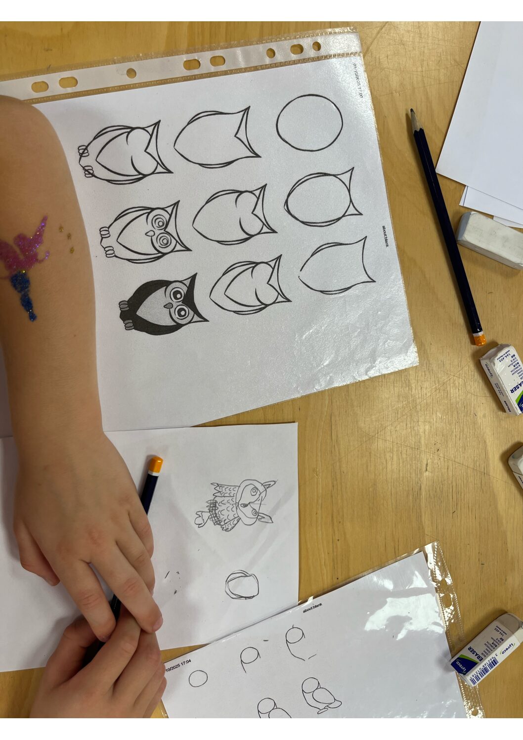 La classe de CP-CE1 est allée à la bibliothèque de Besné jeudi 2 octobre. C’était sur le thème de « la chouette ». La maîtresse a fait deux groupes. Un groupe a dessiné une chouette grâce à un modèle plastifié. Le deuxième groupe a écouté une histoire (qui parlait de chouette) lue par Nathalie. Ensuite, nous avons