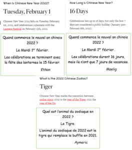 Nous avons également travaillé sur « Chinese New Year » en Anglais pour découvrir cette fête.