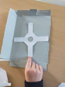 2. On utilise le patron découpé pour le copier sur un carton (type boîte de céréales)