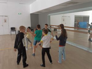 Par exemple, la danse miroir : par deux, on fait les mêmes mouvements en recopiant celui de l’autre.