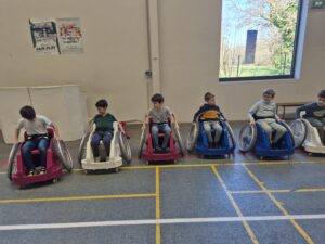 Chaque mardi, nous faisons du handball avec Gwendal et Dany. Nous commençons par un échauffement puis nous faisons des petits tournois. Nous avons fait plusieurs équipes : les loups de la mort, les super fleurs, les super sportives et les Bayern. Après les vacances, nous avons fait une séance handisport.