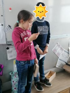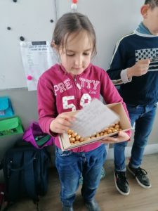 Pour remercier tous les élèves d’avoir tant cherché et d’avoir réussi à retrouvé la recette mystère, au retour de la cantine, un colis de Louis le fils du chocolatier attendait les élèves avec quelques réconforts en chocolat à partager!