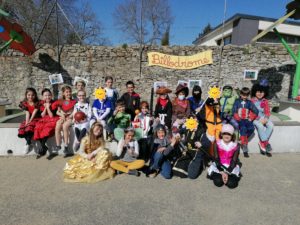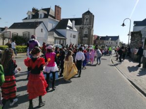 L’après-midi, nous avons fêté tous ensemble la Mi-Carême sous un grand soleil. On a fait le tour de l’ église avec de la musique. Il y avait beaucoup de monde!