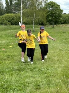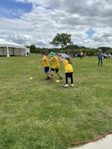 Nous nous sommes retrouvés à Saint Joachim avec six autres écoles (et quelques gendarmes) pour faire une journée sportive. Chaque école avait un tee-shirt d’une couleur précise : Besné était en jaune ! Nous avons commencé par une cérémonie d’ouverture avec un défilé puis un échauffement en dansant.