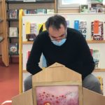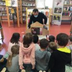 Nous avons rencontré François, le bibliothécaire. Il nous a raconté des histoires. Elles étaient amusantes. Un groupe écoutait l’histoire avec François. L’autre groupe allait chercher des livres et les regardait.