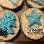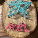 Ensuite, nous avons recouvert notre dessin de clous. Pour démarrer le tissage, nous avons fait un nœud à l’extrémité du motif avec de la laine de couleur. Il fallait tendre la laine entre les clous. On pouvait écrire NOËL et colorier le dessus des clous.