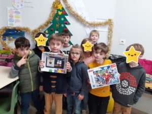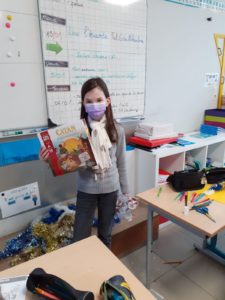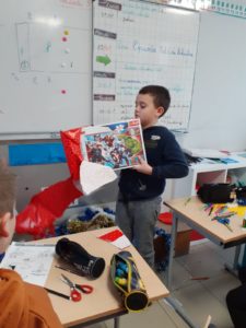les CE2 ont eu un jeu qui se joue tout seul et qui s’appelle « le Catan » puis un puzzle de « super-héros » de 300 pièces.