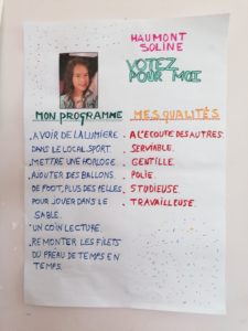 Au retour des vacances de Février, les élèves volontaires ont pu faire des affiches pour se présenter comme délégué et représenter la classe.