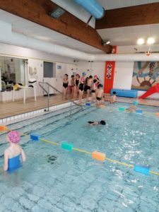 En tout, nous avons eu 6 séances de piscine. Nous avons passé notre palier 1. Il fallait faire 1 plongeon en bouteille, 1 étoile de mer sur le ventre pendant 5 secondes, nager sans toucher le sol jusqu’à l’autre bout du bassin.