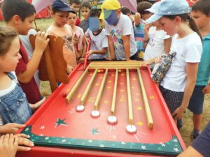 chapiteau, on a joué à des jeux en bois.