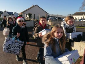 Vendredi 16 décembre, en fin de matinée, les délégués des classes de CP, CE et CM (plus quelques volontaires) sont allés porter avec beaucoup de plaisir et de fierté les boites de Noël complétées et décorées par toute l’école au salon de coiffure Coiffure Coraly.