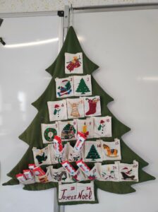 Dans la classe de moyenne section et de grande section, on a un calendrier de l’avent. Tous les jours on tire au sort l’enfant qui va avoir le chocolat.
