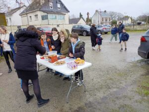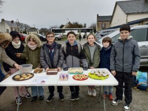 Tous les vendredis, après l’école, les élèves de CM vendent des gâteaux qu’ils ont préparés, afin de financer leur classe de mer où nous ferons de la voile et de la pêche en mai prochain à Piriac.