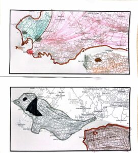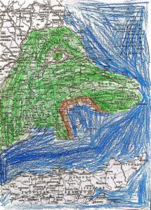 Marcoleptique utilise les cartes. Nous avons regardé ses œuvres : les pays qu’on connaissait se sont transformés en personnages. Par exemple, la France s’est transformée en chien !